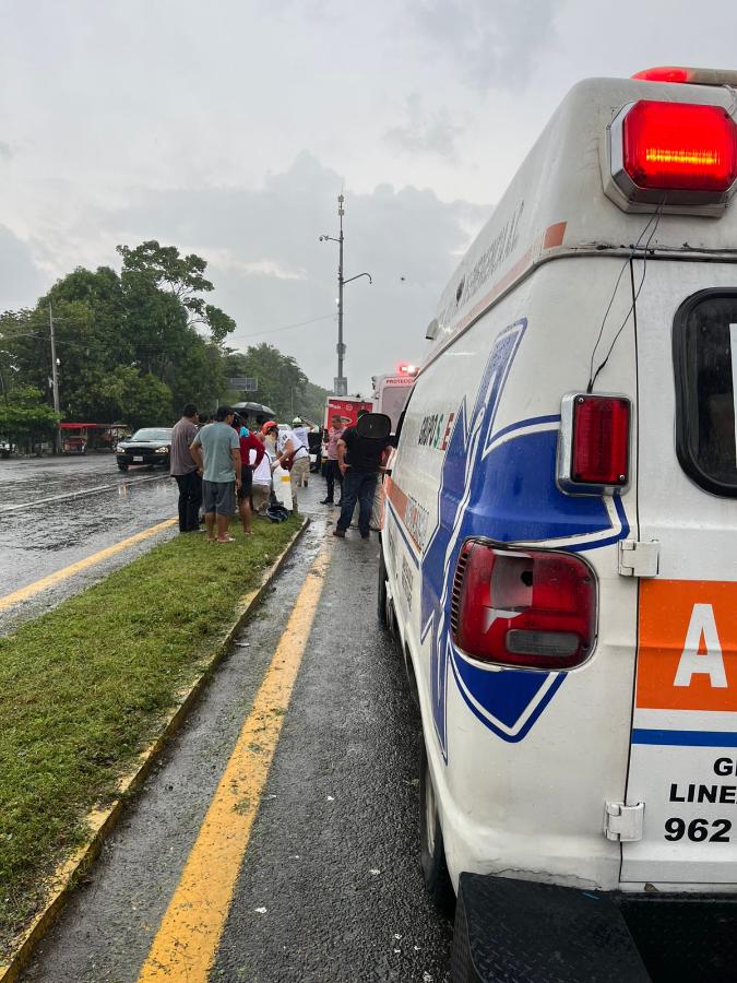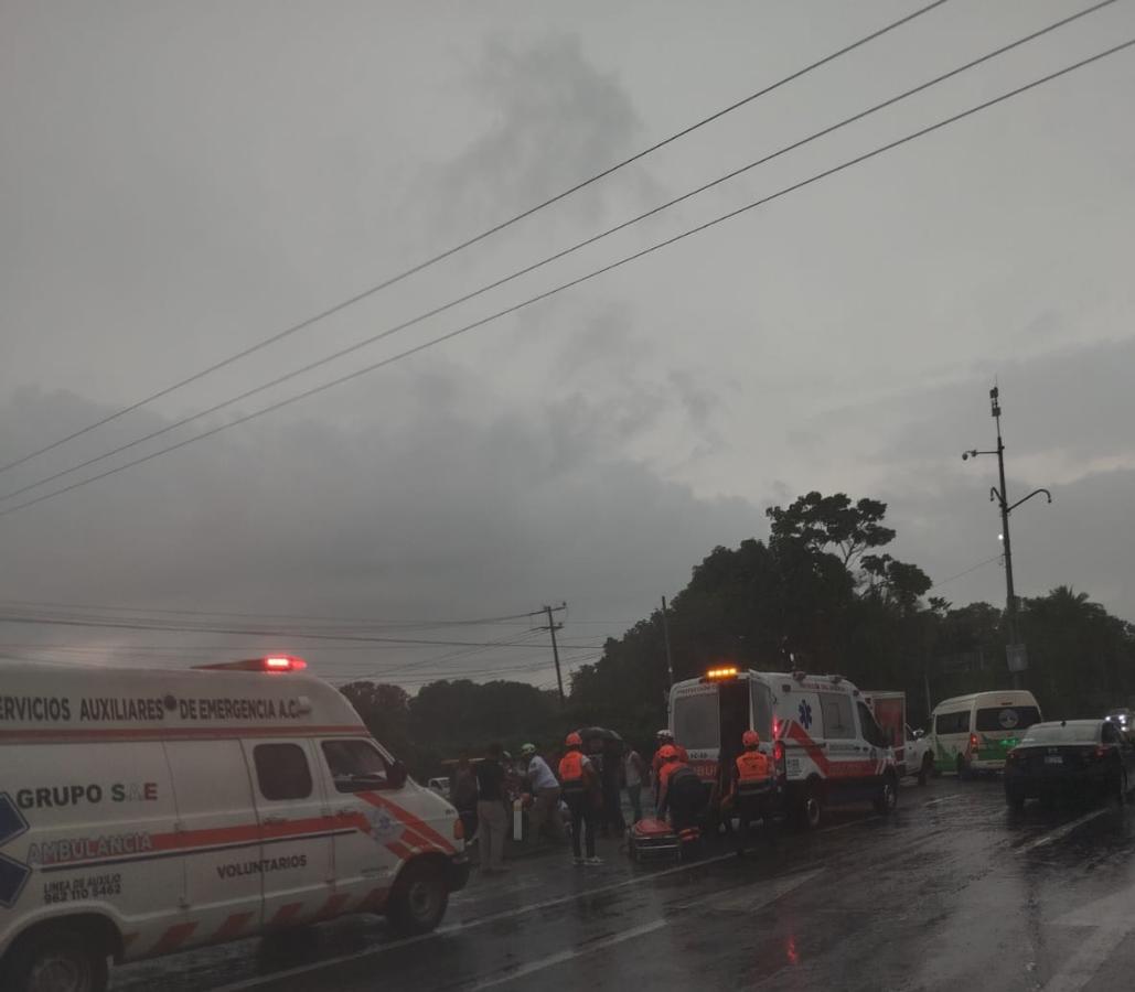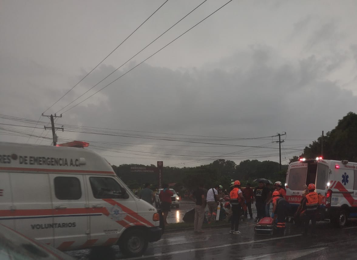 El primer percance involucró a una motocicleta en la que viajaban dos personas, quienes habrían recibido un fuerte impacto en la parte trasera del vehículo. La colisión provocó que los tripulantes perdieran el control y derraparan sobre la cinta asfáltica.