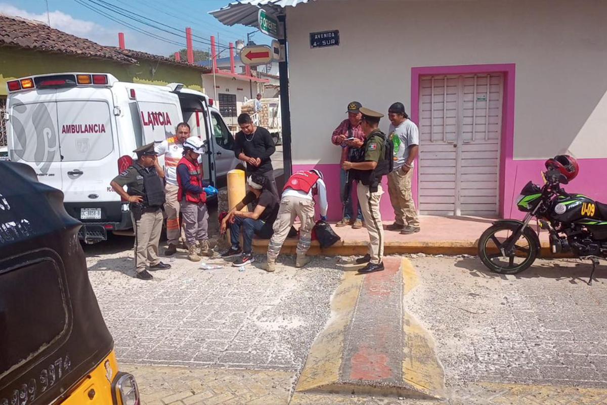 El incidente se registró en la intersección de la 3ª Oriente y 4ª Sur, cuando el conductor de la motocicleta atravesó un tope, lo que provocó que perdiera estabilidad y terminara impactándose contra el vehículo.