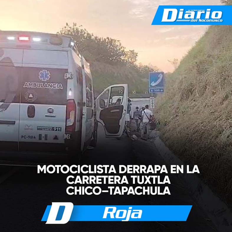Se registró un accidente vial sobre el tramo carretero Tuxtla Chico–Tapachula, aproximadamente 400 metros antes del puente Cahoacán, luego de que el conductor de una motocicleta derrapara y se impactara contra un objeto fijo.