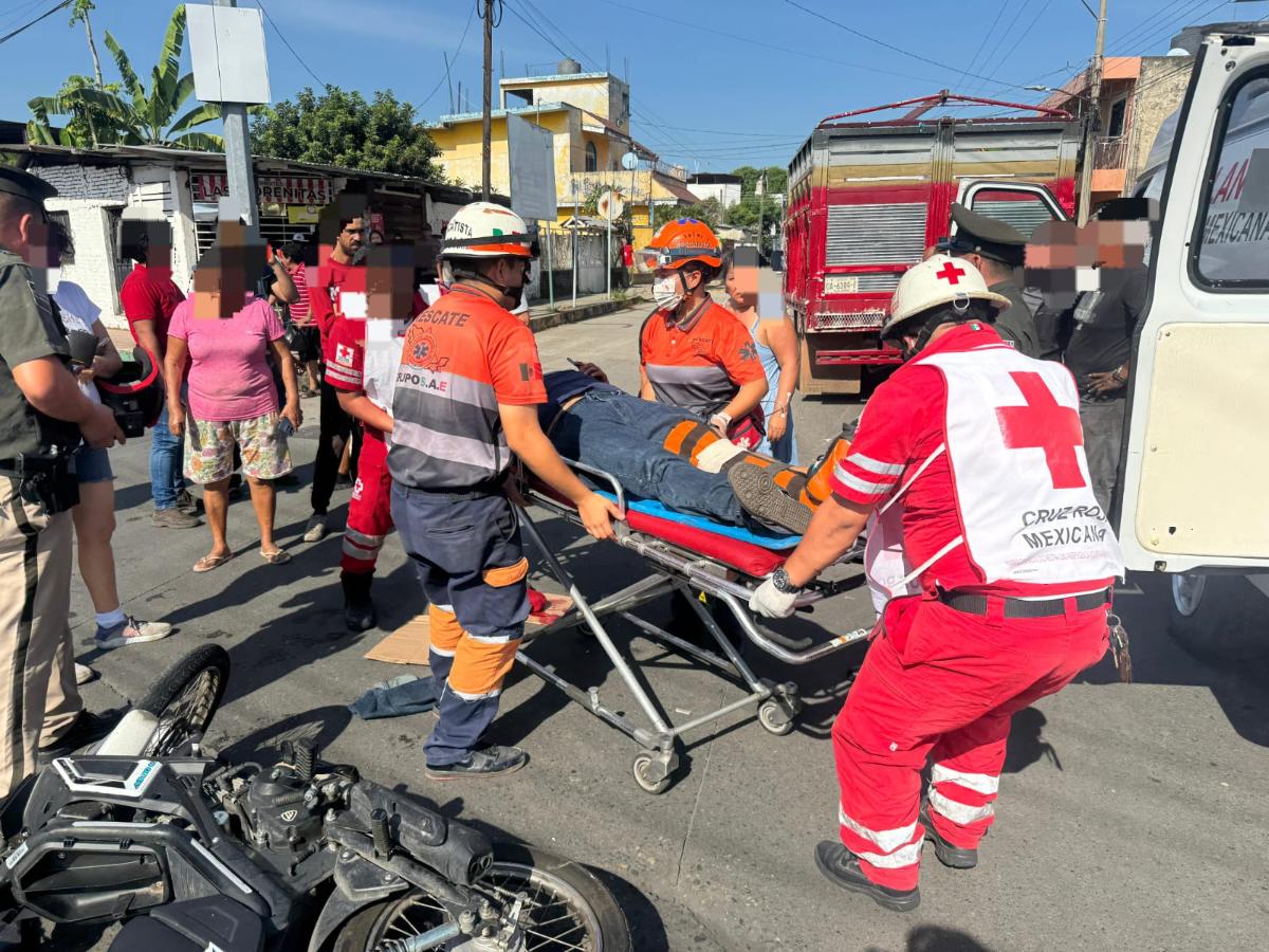Un motociclista resultó lesionado luego de colisionar contra un camión Ford de color rojo, con capacidad de tres toneladas, en un accidente registrado sobre la Diagonal y Calle Nueva al fraccionamiento Las Vegas, en el cruce con la 26ª Calle Poniente de la colonia San Sebastián.