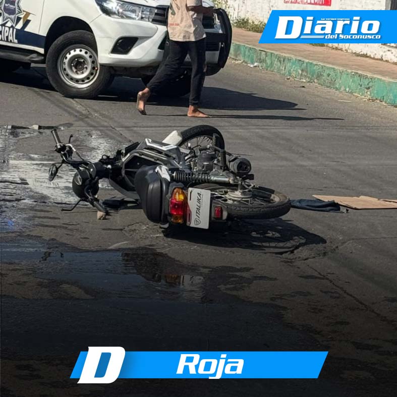 Un motociclista resultó lesionado luego de colisionar contra un camión Ford de color rojo, con capacidad de tres toneladas, en un accidente registrado sobre la Diagonal y Calle Nueva al fraccionamiento Las Vegas, en el cruce con la 26ª Calle Poniente de la colonia San Sebastián.