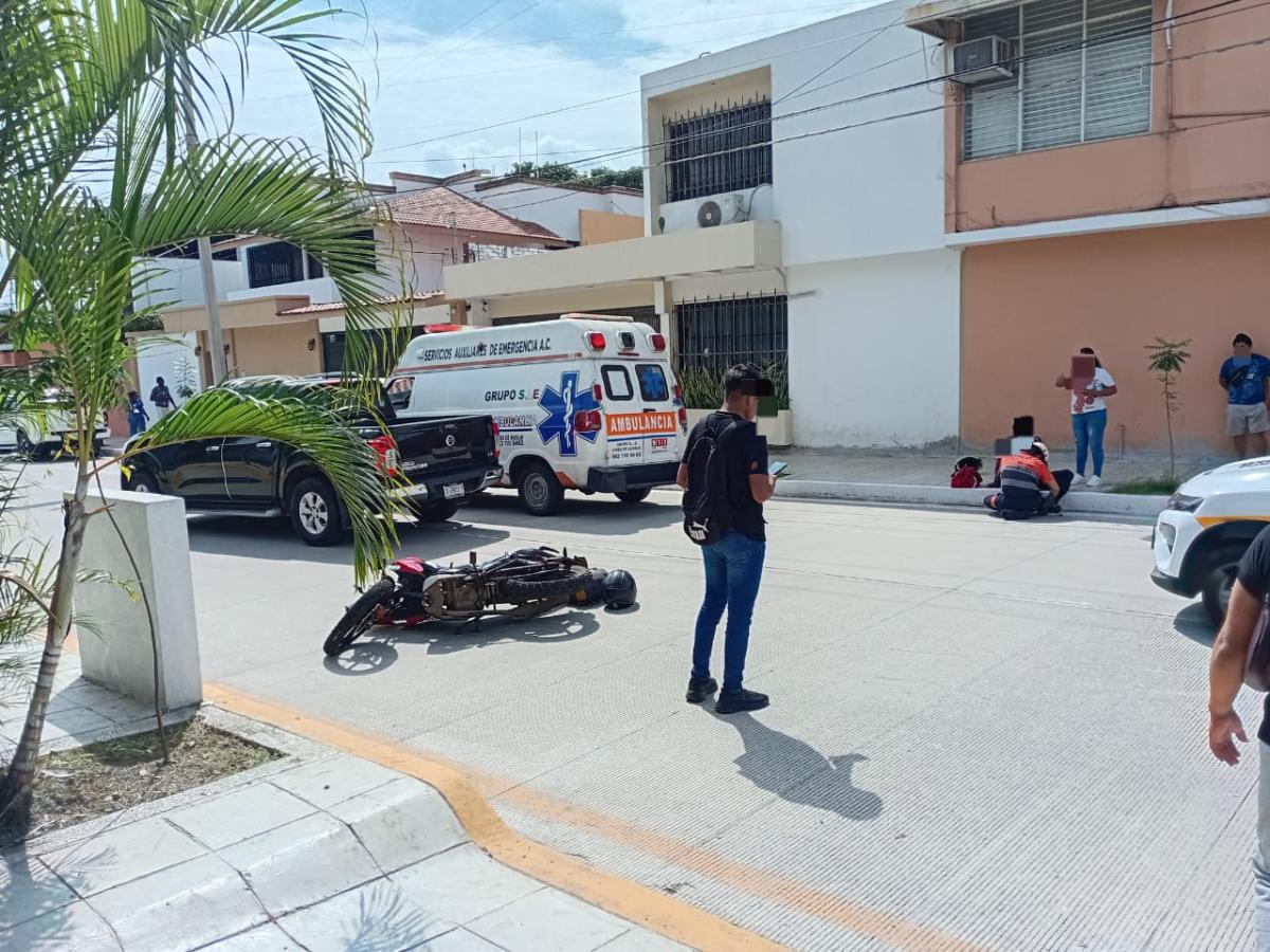 El percance ocurrió alrededor de las 11:30 horas, cuando el conductor de un vehículo del servicio público presuntamente no se percató de la presencia de una motocicleta que circulaba con dirección de sur a norte, provocando la colisión.