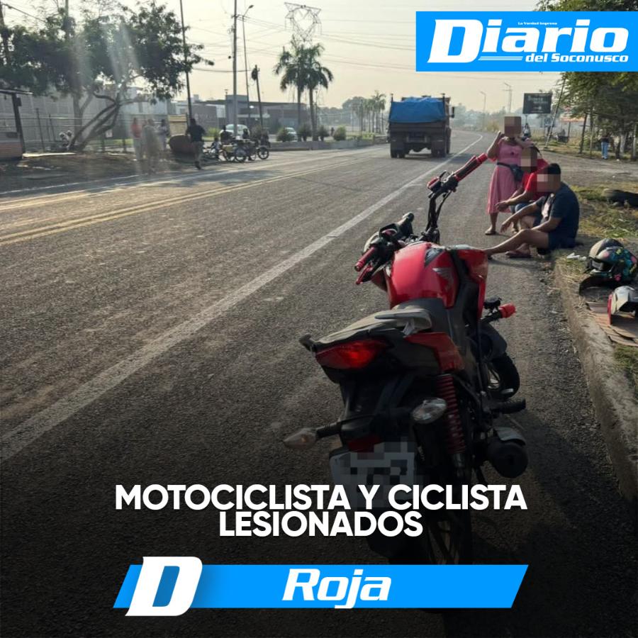 Un motociclista y un ciclista resultaron con diversas lesiones luego de protagonizar un choque sobre la carretera del Libramiento Sur, a escasos metros del entronque con el camino a La Pita.