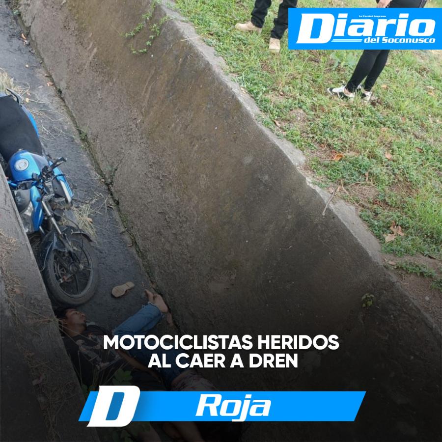 Dos motociclista, un hombre y una mujer, resultaron lesionados tras caer a la zanja en el Par Vial de la 7 Avenida Sur.