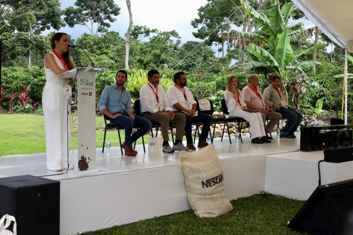 Durante la celebración del 15 aniversario, que reunió a productores del país y trabajadores de Nescafé en el municipio de Tuxtla Chico, Rosa María Cordero, Vicepresidenta de cafés y bebidas de Nestlé, México, destacó la confianza que los productores han tenido con la empresa para lograr que ambas partes se beneficien.