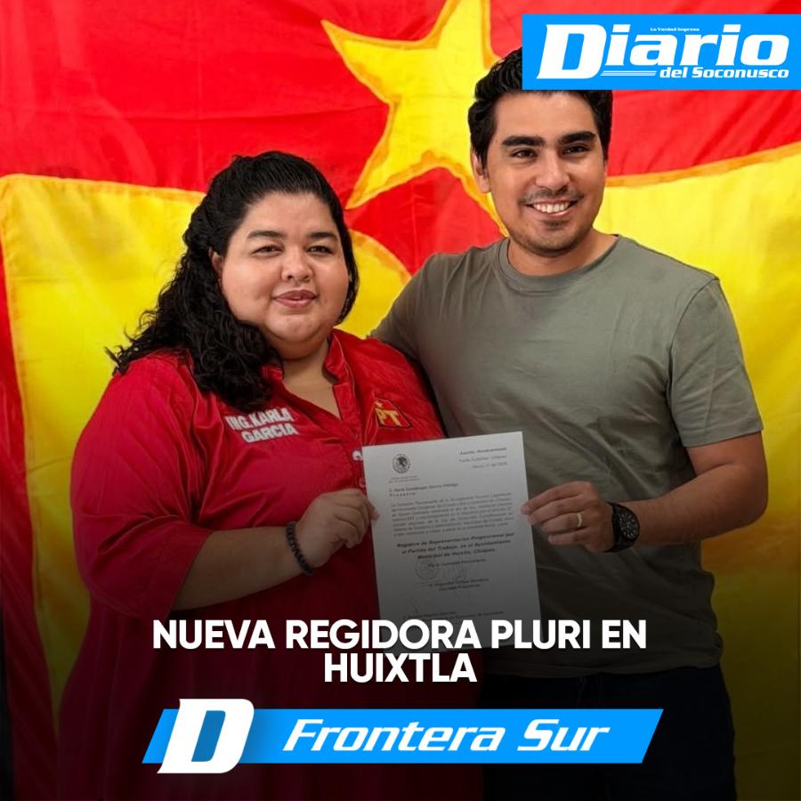 Luego de la renuncia de la regidora plurinuminal por el Partido del Trabajo (PT), Sandra Martínez Ceja, este miércoles fue nombrada Carla Guadalupe García Hidalgo, para la misma encomienda dentro del Ayuntamiento de Huixtla.