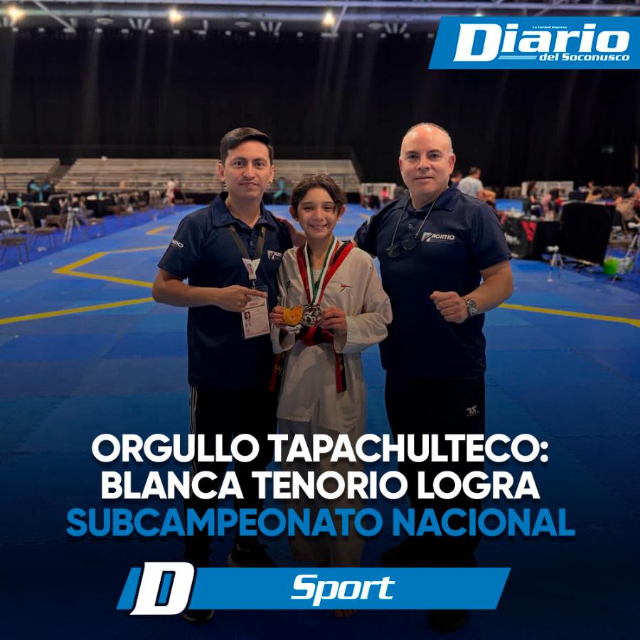 Blanca Elena Tenorio Ramírez, integrante de La escuela Moo Duk Kwan Tapachula, ha logrado coronarse como subcampeona nacional al obtener la medalla de plata en el 5º Festival Mexicano G10, organizado por la Federación Mexicana de Taekwondo, A.C.
