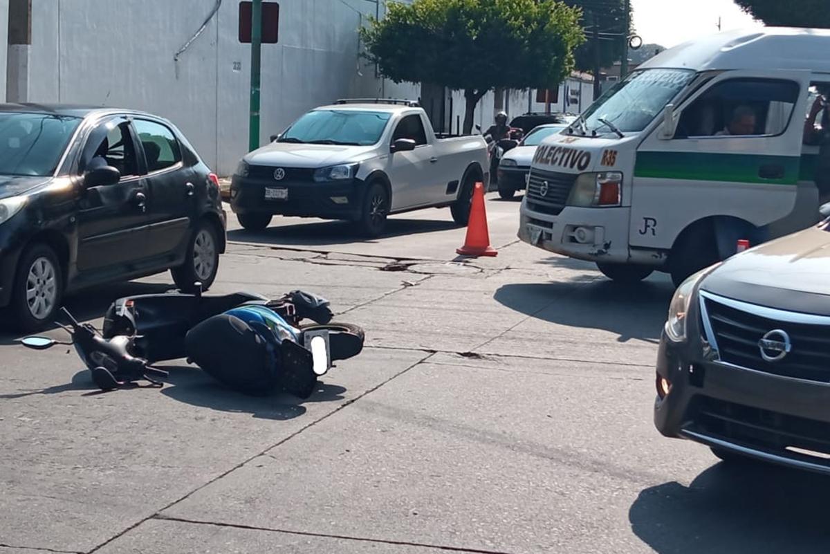Un motociclista resultó lesionado luego de ser lanzado por una unidad del transporte público en la 6ª Avenida Norte, entre 19ª Calle Poniente, frente al edificio del DIF municipal. El motociclista informó que circulaba a bordo de una motoneta Italika color azul, cuando fue impactado lateralmente por una Nissan Urvan blanca con franjas verdes, perteneciente a la ruta 5 de Febrero, que transitaba de norte a sur.
