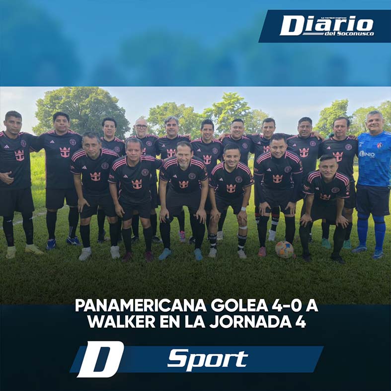 El equipo Panamericana logró una contundente victoria de 4-0 sobre Walker, durante la jornada 4 de la categoría Veteranos Junior, de la Liga de Futbol Asociación Médica Tapachula, presidida por David Olvera Santos.