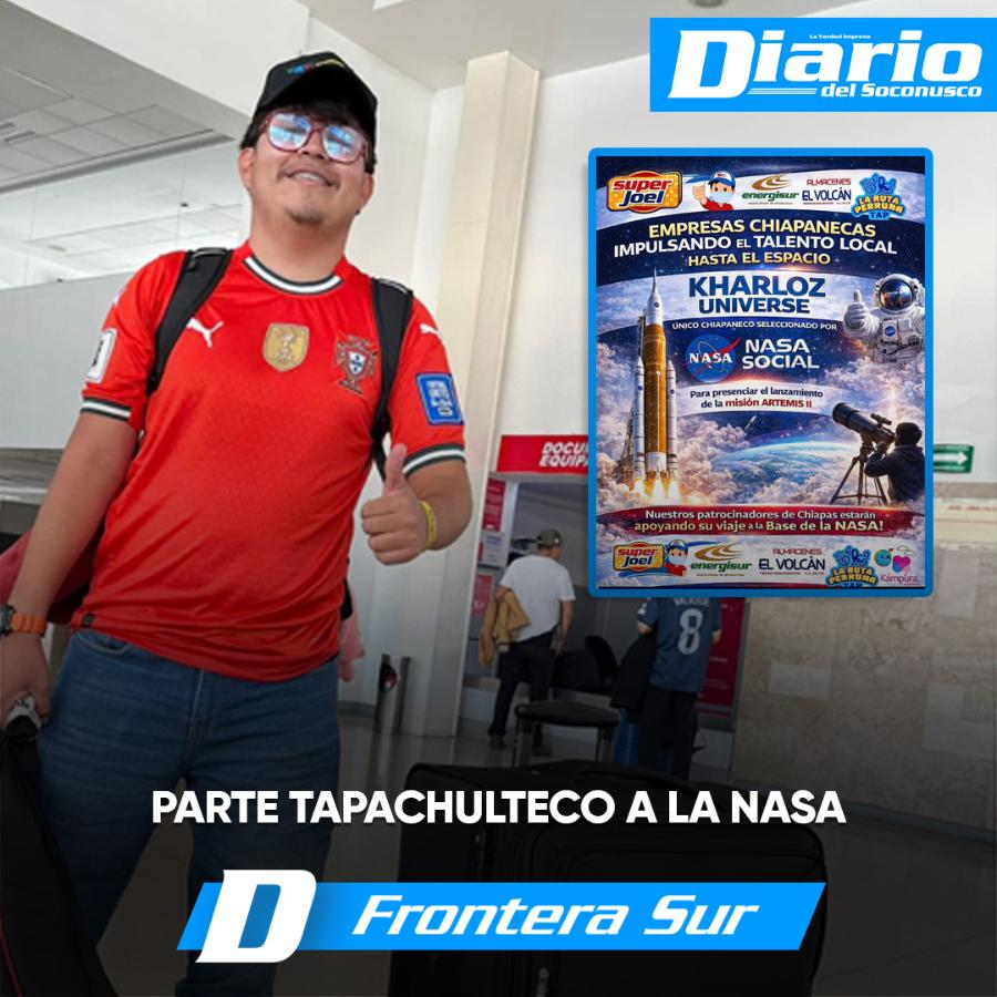 El joven científico tapachulteco y divulgador de contenido digital, Juan Carlos Barredo Robledo, partió a la NASA, en Estados Unidos, para participar en el lanzamiento de la nave Orión de la Misión Artemis II, que tendrá lugar el próximo 6 de febrero.