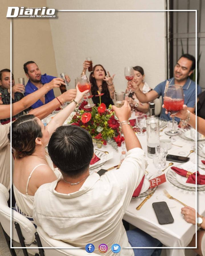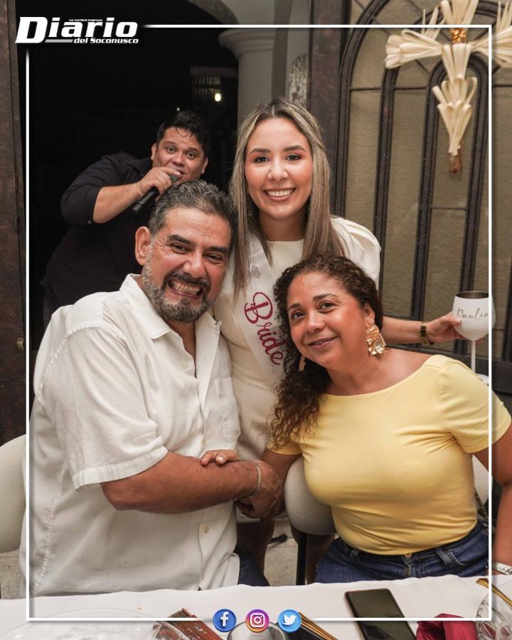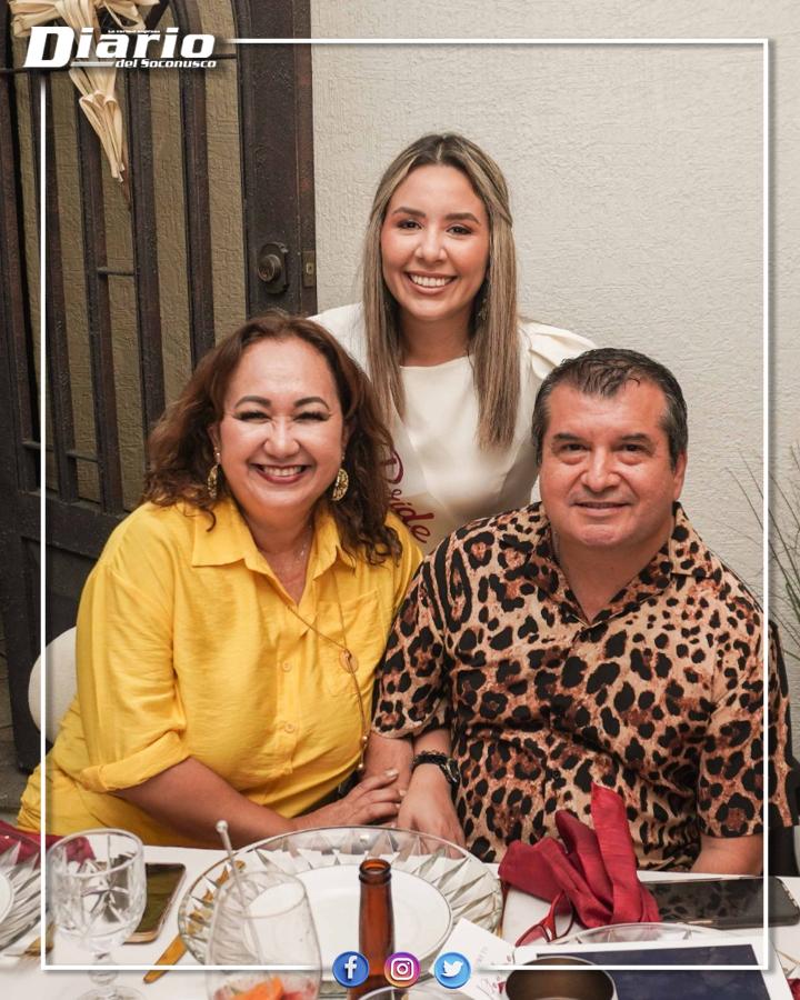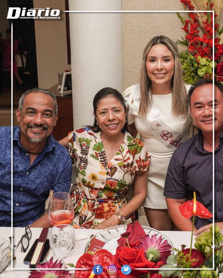 Después, los anfitriones dieron la bienvenida formal a los invitados con una distinguida cena, que incluyó cocteles de bienvenida y un variado buffet, cuidadosamente preparado para la ocasión. La celebración continuó con el tradicional corte del pastel, momento en el que no faltaron las muestras de cariño, así como palabras de felicitación y buenos deseos dirigidos a la futura pareja.
