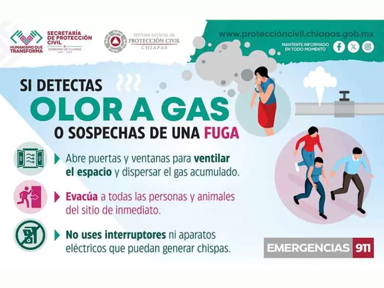 En caso de sospecha de fuga de gas, se recomienda abrir puertas y ventanas para ventilar el espacio, evacuar a todas las personas y animales del sitio de forma inmediata y no utilizar interruptores ni aparatos eléctricos que puedan generar algún tipo de chispa. La Secretaría de Protección Civil sigue trabajando para reducir riesgos en esta temporada y hace un llamado a la sociedad en general a ser precavida y estar atentos a las recomendaciones.