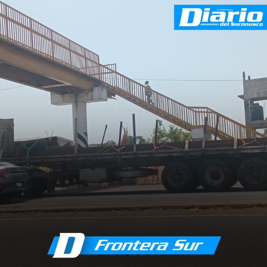 A pesar que permanece el puente peatonal para cruzar los cuatro carriles de la carretera Costera en Huehuetán, peatones no lo utilizan y arriesgan sus vidas en esta vía transitada.
