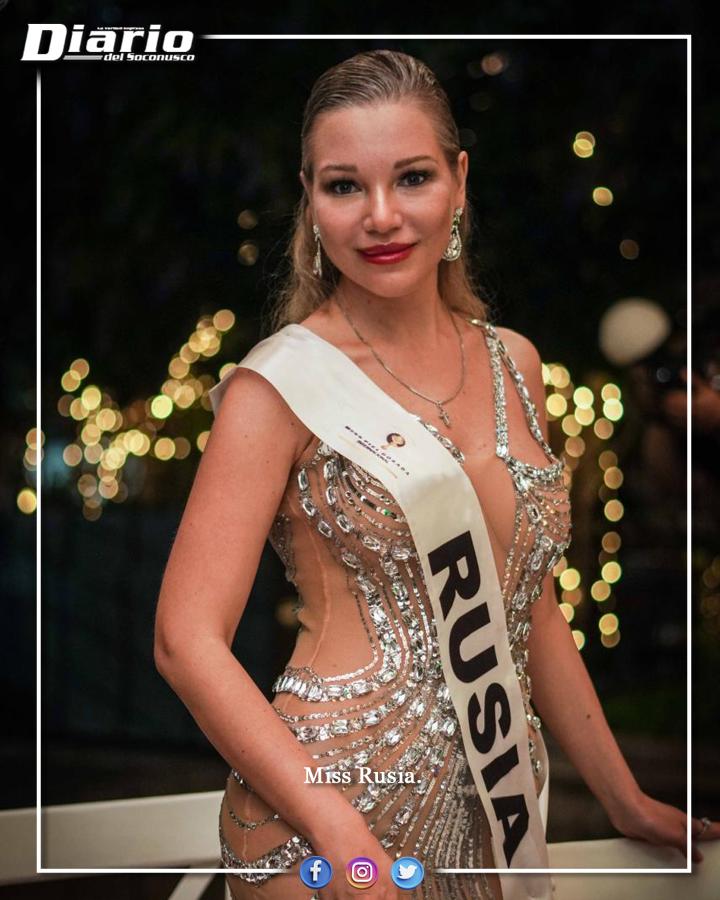 Durante el evento, cada una de las participantes desfiló y se presentó ante el público, portando vestidos de noche y mostrando la banda del país al que representan. Entre las naciones participantes destacan Letonia, Rusia, Hungría, Paraguay, Chile, Cuba, El Salvador y Honduras. Por su parte, México cuenta con dos representantes: una con la banda nacional y otra en representación de la Riviera Maya.