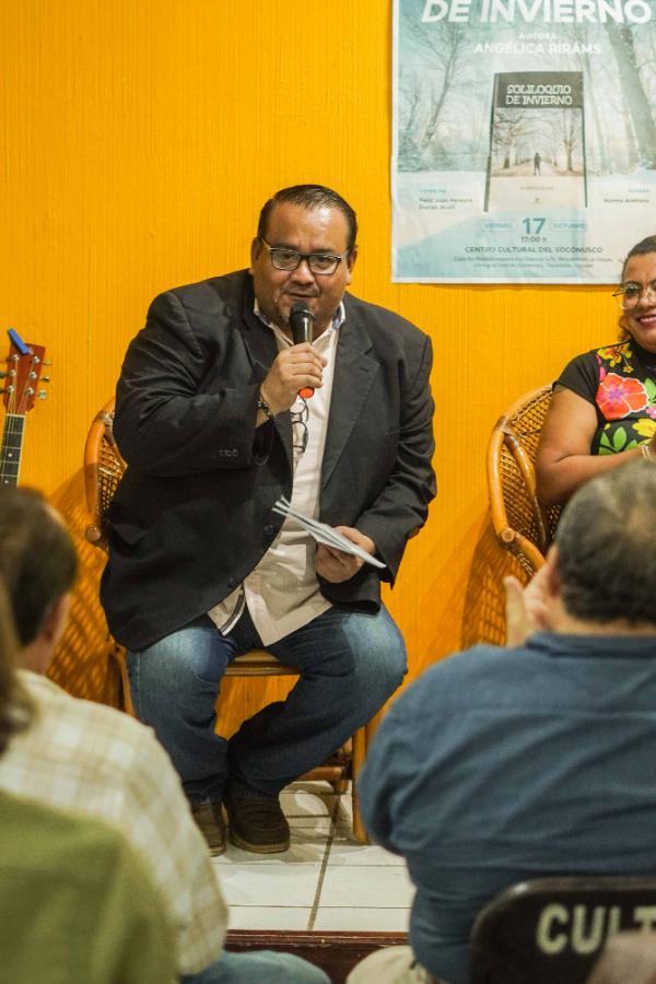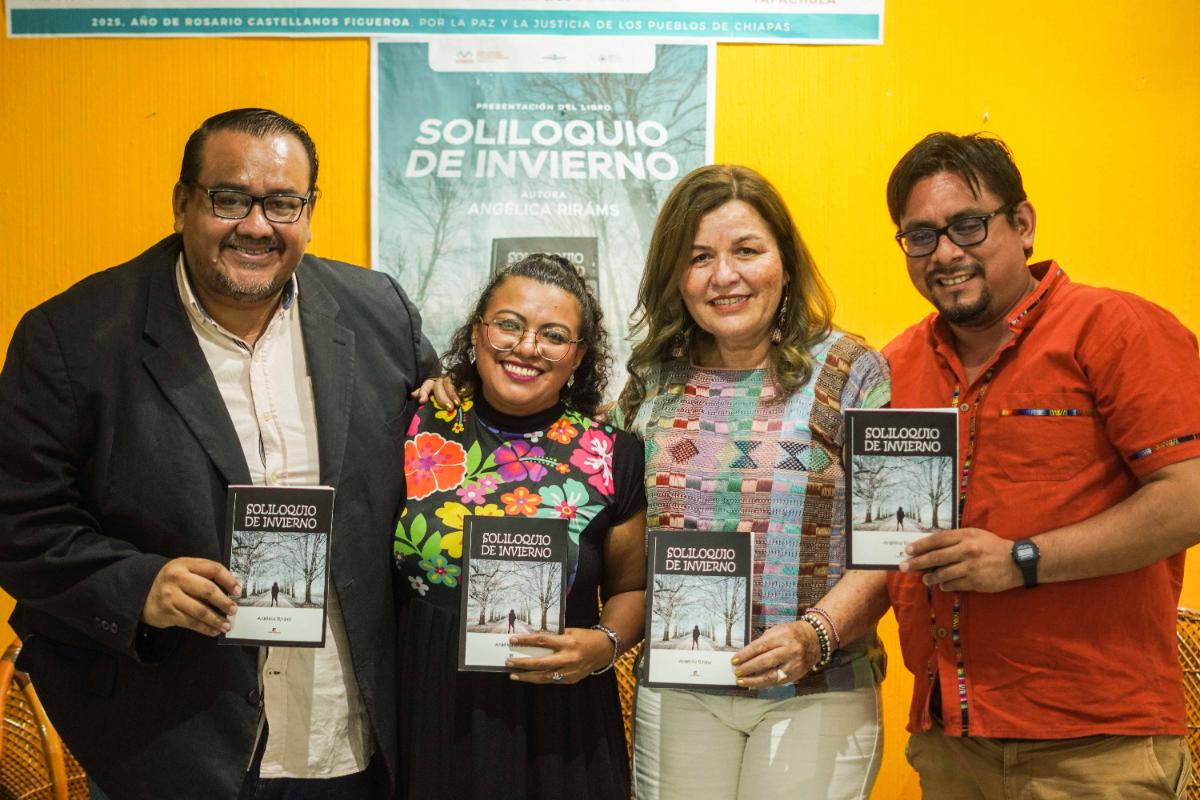 Tapachula, Chiapas.- La maestra Angélica Rirams, reconocida promotora de la cultura en la región del Soconusco, presentó su más reciente obra titulada Soliloquio de Invierno en el Centro Cultural del Soconusco, ubicado en Residencial Las Vegas de esta ciudad.