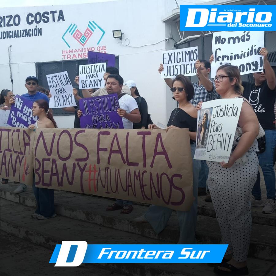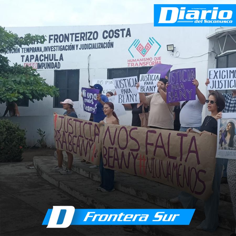Familiares y amigos de Beany Guadalupe Lozano García, víctima de feminicidio presuntamente a manos de su pareja sentimental, protestaron frente a las oficinas de la Fiscalía de Distrito Fronterizo Costa, en exigencia de justicia para la joven y la detención de su agresor.
