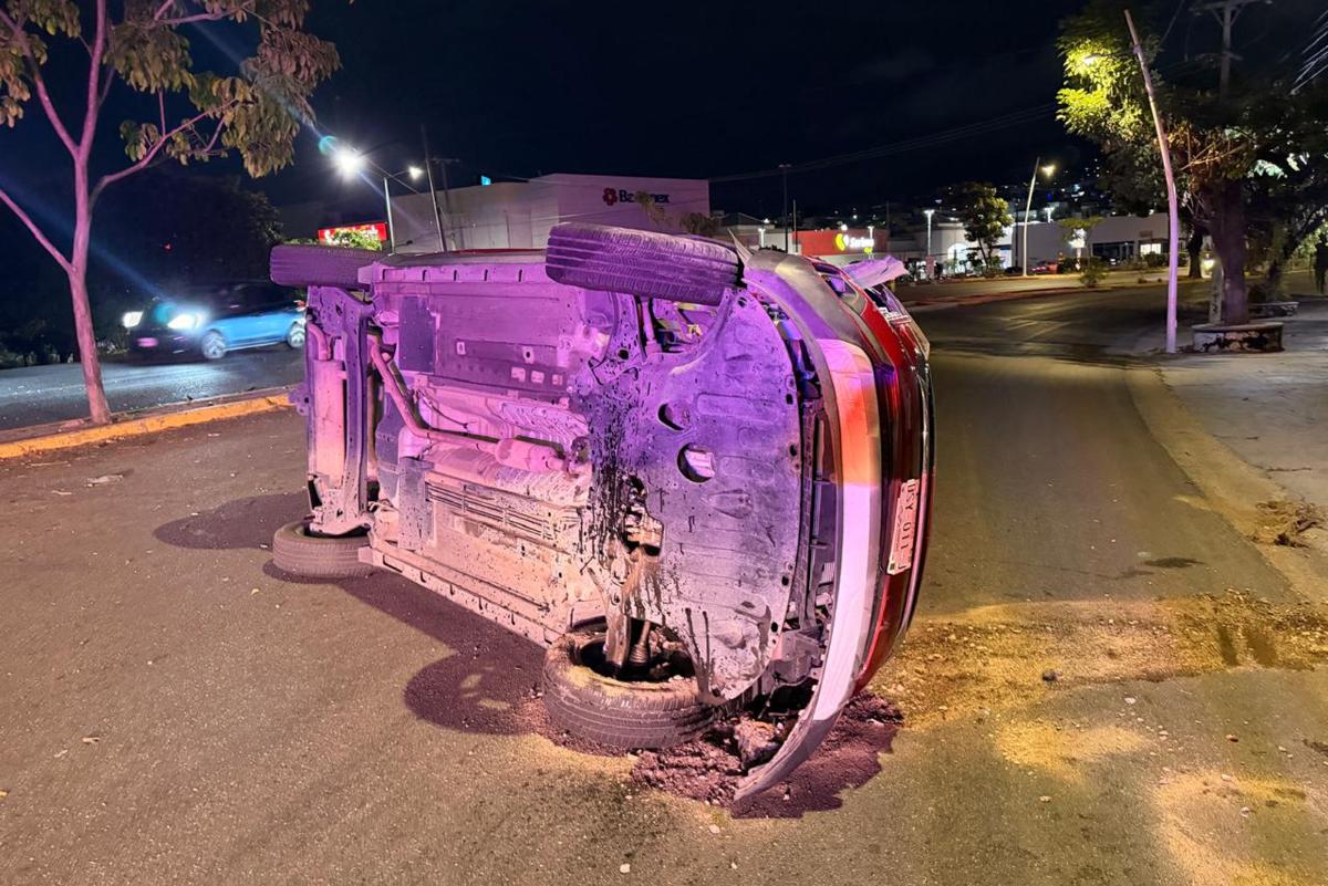 - Un automóvil terminó volcado luego que su conductor perdiera el control por el exceso de velocidad y las lluvias