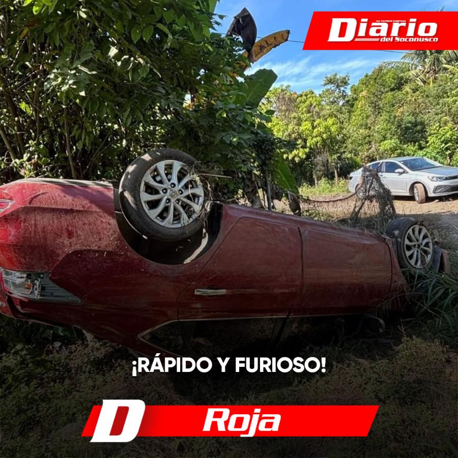Un automóvil Nissan Sentra de color rojo terminó volcado a un costado de la carretera Tapachula–Puerto Madero, a la altura de la conocida parada 4 Milpas, generando la movilización de cuerpos de seguridad en la zona. Afortunadamente, no se reportaron personas lesionadas, únicamente daños materiales en el vehículo involucrado.