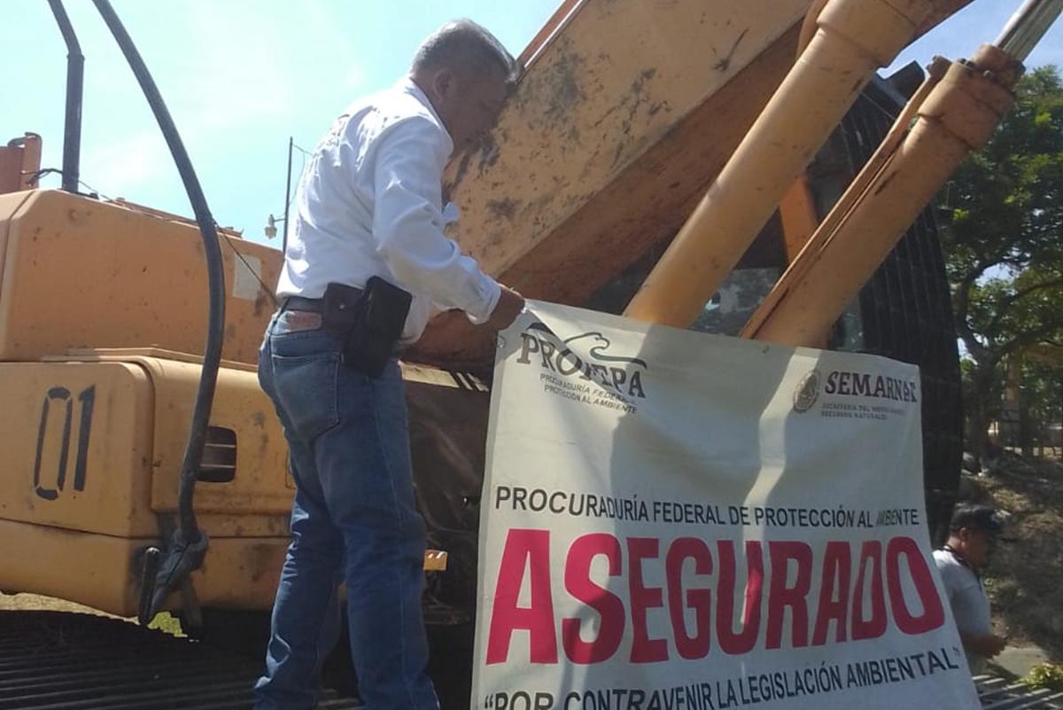 Los trabajos de construcción del muro de protección del río Suchiate se reanudaron este jueves, luego de que personal de la Procuraduría Federal de Protección al Ambiente (Profepa) quitara los sellos de clausura en la maquinaria pesada y del lugar, donde se deriva el agua para riego de los cultivos de los productores de plátano.