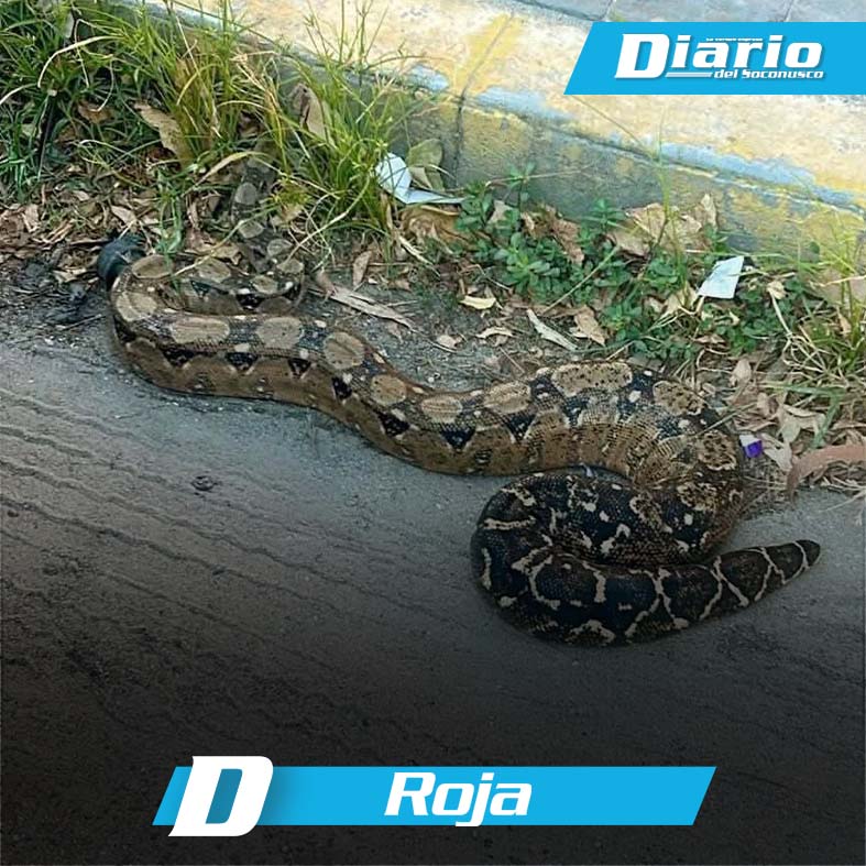 Personal de Protección Civil Municipal de Tonalá atendió de manera oportuna la presencia de una boa constrictor, mejor conocida como “mazacuata”, que se encontraba en la vía pública, generando alarma entre vecinos y automovilistas.