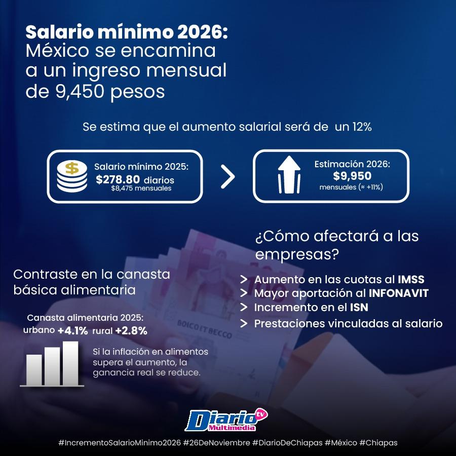 Este ajuste también impactará en el costo de la canasta básica y en las obligaciones de las empresas, como cuotas del IMSS, aportaciones al Infonavit y el ISN.