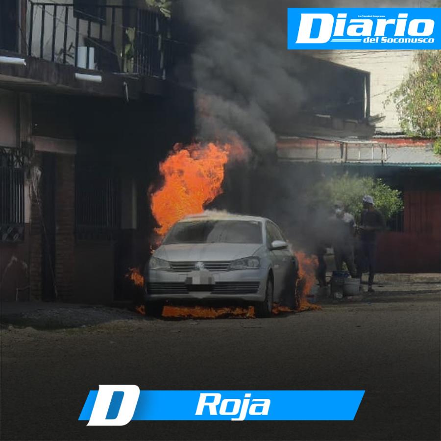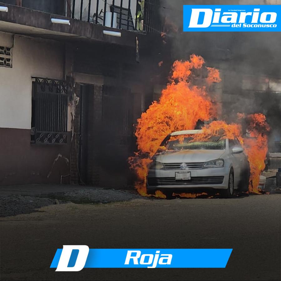 Un automóvil Volkswagen Vento de color plata quedó reducido a cenizas luego de incendiarse de manera sorpresiva cuando se encontraba estacionado sobre la 6ª avenida Norte y esquina con la 33ª calle Poniente, en la colonia 5 de Febrero.