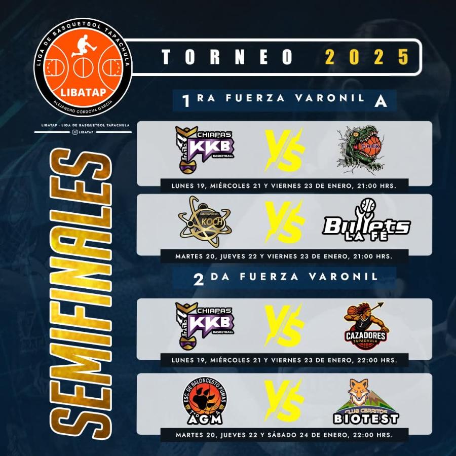 La emoción del baloncesto regresa con fuerza a Tapachula con la reactivación de las actividades del Torneo de Copa LIBATAP 2025, que este 19 de enero vuelve a la duela con la disputa de las Semifinales, las cuales se definirán a dos de tres partidos, donde únicamente los mejores equipos avanzarán en la lucha por el campeonato.