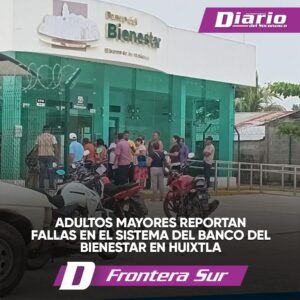 Adultos mayores reportan fallas en el sistema del Banco del Bienestar en Huixtla