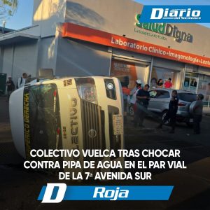 Colectivo vuelca tras chocar contra pipa de agua en el Par Vial de la 7ª Avenida Sur
