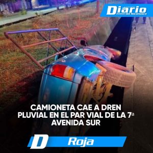 Camioneta cae a dren pluvial en el Par Vial de la 7ª Avenida Sur