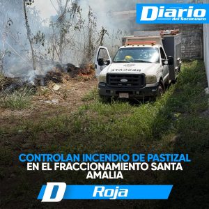 Darinel González Un incendio de pastizal registrado en un patio baldío generó la movilización de cuerpos de emergencia la tarde de este jueves a la altura del fraccionamiento Santa Amalia.