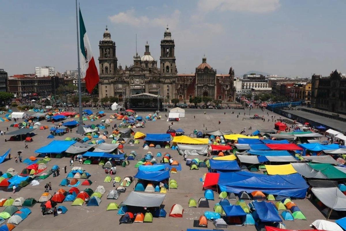 Cerca de las 13:00 decenas de maestros comenzaron a instalar casas de campaña en la plancha de la Plaza de la Constitución, que luce prácticamente llena.