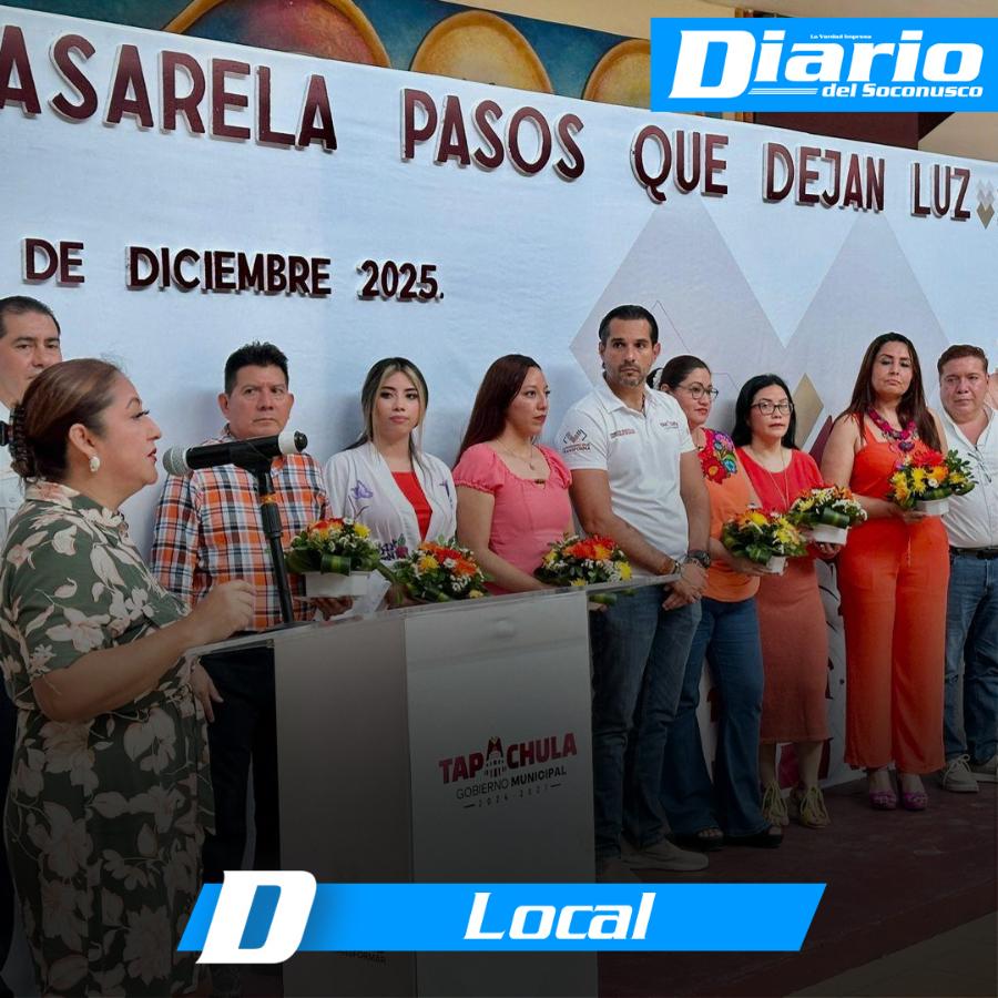 Por instrucción del presidente municipal Yamil Melgar Bravo, el Ayuntamiento de Tapachula, a través de la Secretaría de Igualdad de Género Municipal, llevó a cabo la pasarela simbólica “Pasos que dejan luz”, una iniciativa orientada a promover la igualdad y la eliminación de la violencia contra las mujeres, reconociendo su fortaleza y dignidad.
