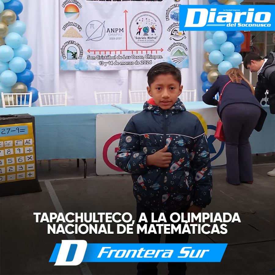 El estudiante tapachulteco de 8 años de edad, obtuvo su pase al Nacional de Matemáticas el pasado 13 de marzo en la fase estatal, efectuado en San Cristóbal de la Casas, donde quedó en segundo lugar. El primer lugar fue para la niña Sofía Arlette Vázquez Ake, de la región Norte de Chiapas.
