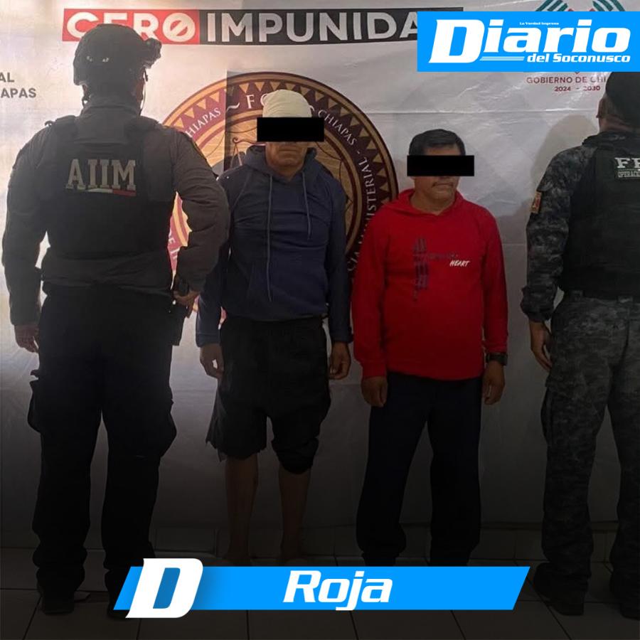 Elementos de la Agencia de Investigación e Inteligencia Ministerial, en coordinación con la Fuerza de Reacción Inmediata Pakal (FRIP), pusieron a disposición de la Fiscalía del Ministerio Público a los campesinos Gamaliel N y Gabriel N, el primero como presunto responsable del delito de homicidio calificado y el segundo por encubrimiento, cometidos en agravio de quien en vida respondiera al nombre de Maximino.