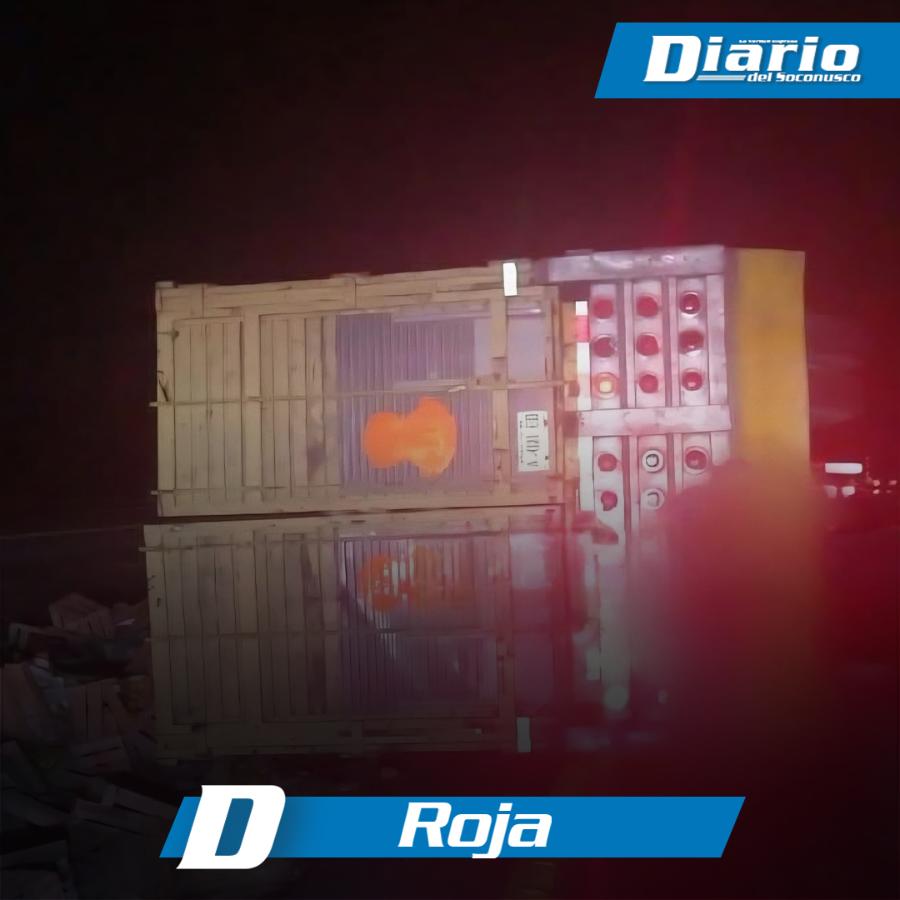 Durante la madrugada de este viernes, alrededor de las 3:00 de la mañana, se registró un aparatoso accidente sobre la carretera que comunica a Tonalá con Arriaga, a la altura del kilómetro 52+500, donde un camión tipo Torton terminó volcado.