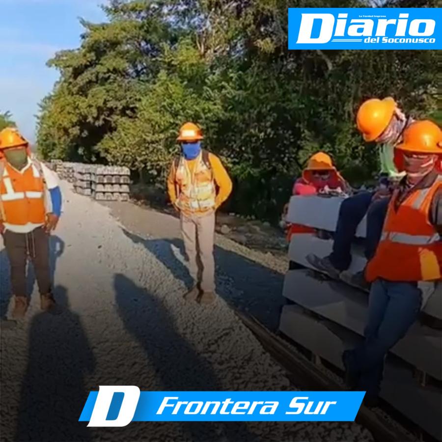 Huixtla.- Ante la falta de cumplimiento por pagos de horas extras, desde hace más de un mes, trabajadores del viaducto elevado donde circulará el tren Interoceanico iniciaron paro de labores desde las 05:00 horas de este sábado.