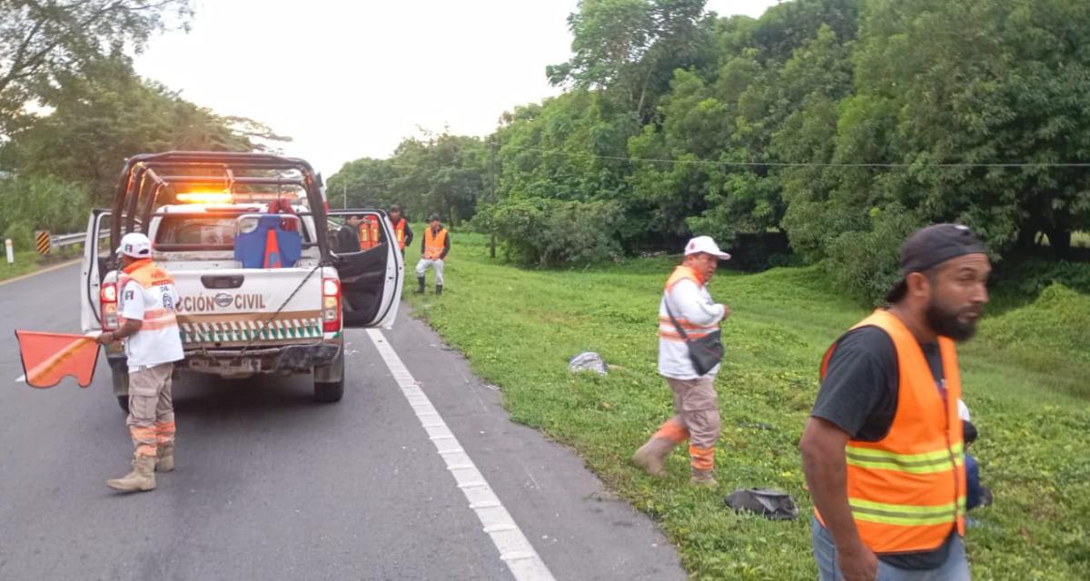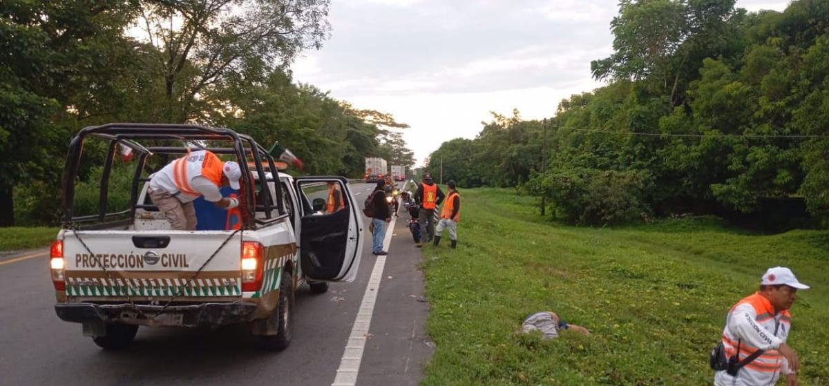 Por lo que al ir circulando a la altura del kilómetro 213+350, (Frente al desvío de Soconusco) dentro de la carretera costera del citado tramo, los rebasó un pesado tráiler que los aventó y al mismo tiempo se salieron de la carpeta asfáltica, lo que como consecuencias arrojó un muerto y un herido.