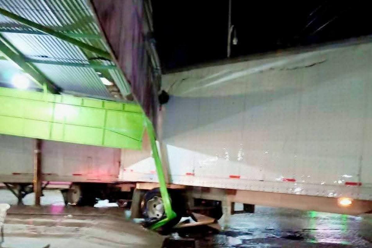 Un tráiler con doble remolque causó severas afectaciones a la estructura metálica de la galera del sitio de taxis, frente al Instituto Mexicano del Seguro Social (IMSS) de Huixtla.