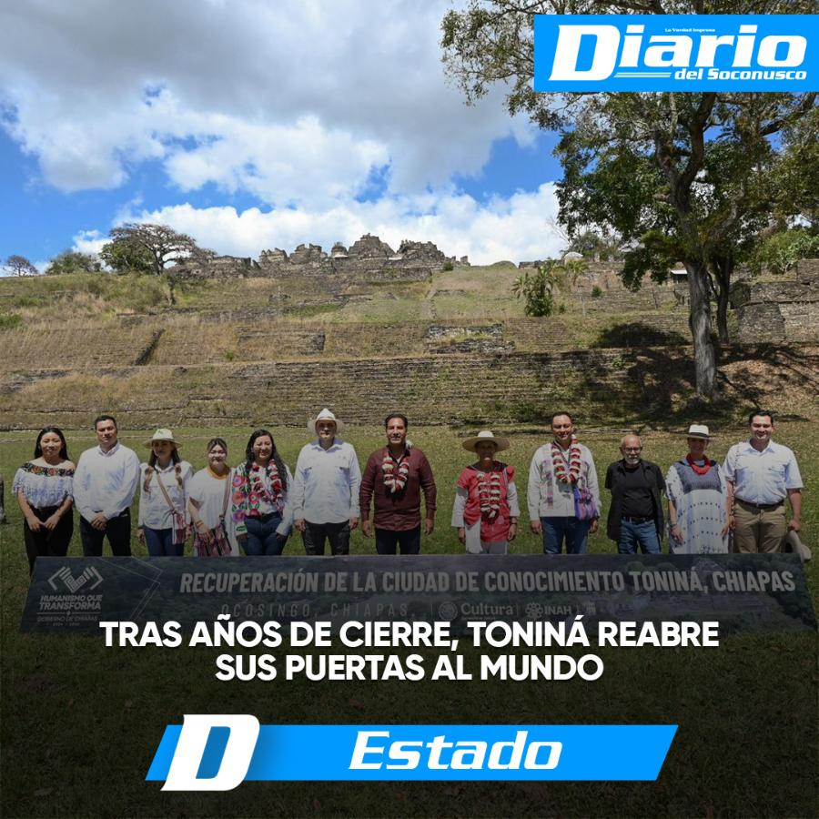 El gobernador Eduardo Ramírez Aguilar encabezó, junto a la asesora de la Presidencia de la República, Jesusa Rodríguez Ramírez, la ceremonia de recuperación de la zona arqueológica Ciudad de Conocimiento Toniná, en el municipio de Ocosingo. Destacó que este acto atiende el compromiso de la presidenta Claudia Sheinbaum Pardo de reabrir las puertas de este espacio cultural e histórico que pertenece a Chiapas, a México y al mundo.