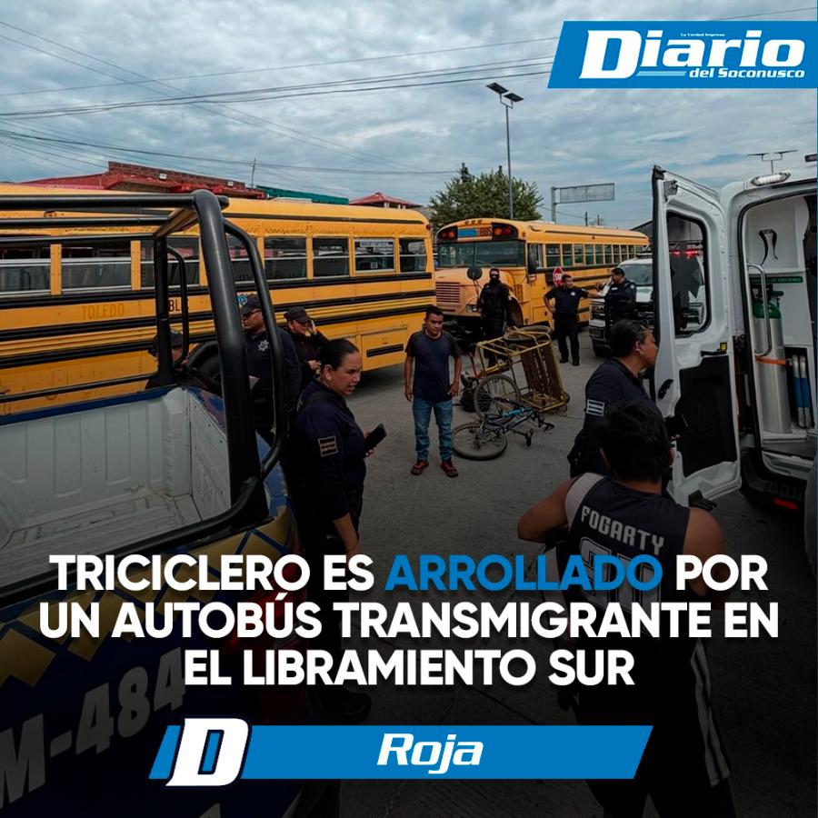 Un hombre de aproximadamente 55 años resultó lesionado la mañana de este martes, luego de ser arrollado por un autobús transmigrante de doble remolque sobre el Libramiento Sur Poniente, a la altura de la entrada a la colonia Raymundo Enríquez.