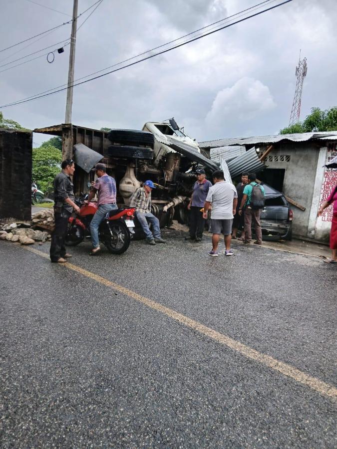 Un fuerte accidente protagonizado por un camión tipo volteo, utilizado para el acarreo de material pétreo, dejó como saldo dos personas lesionadas y daños materiales en la sierra de Escuintla.