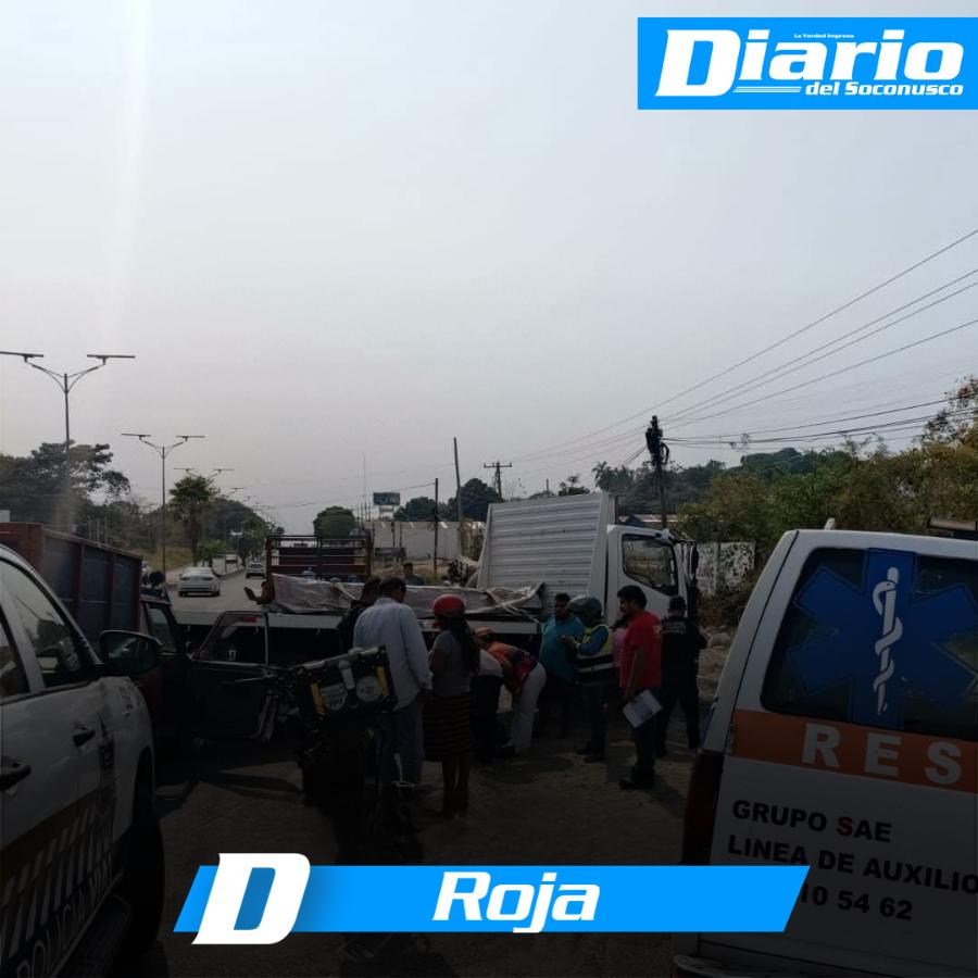 Una persona resultó lesionada la mañana de este jueves tras registrarse un aparatoso accidente sobre la carretera Tapachula–Viva México, a la altura de la entrada a la colonia San Agustín.