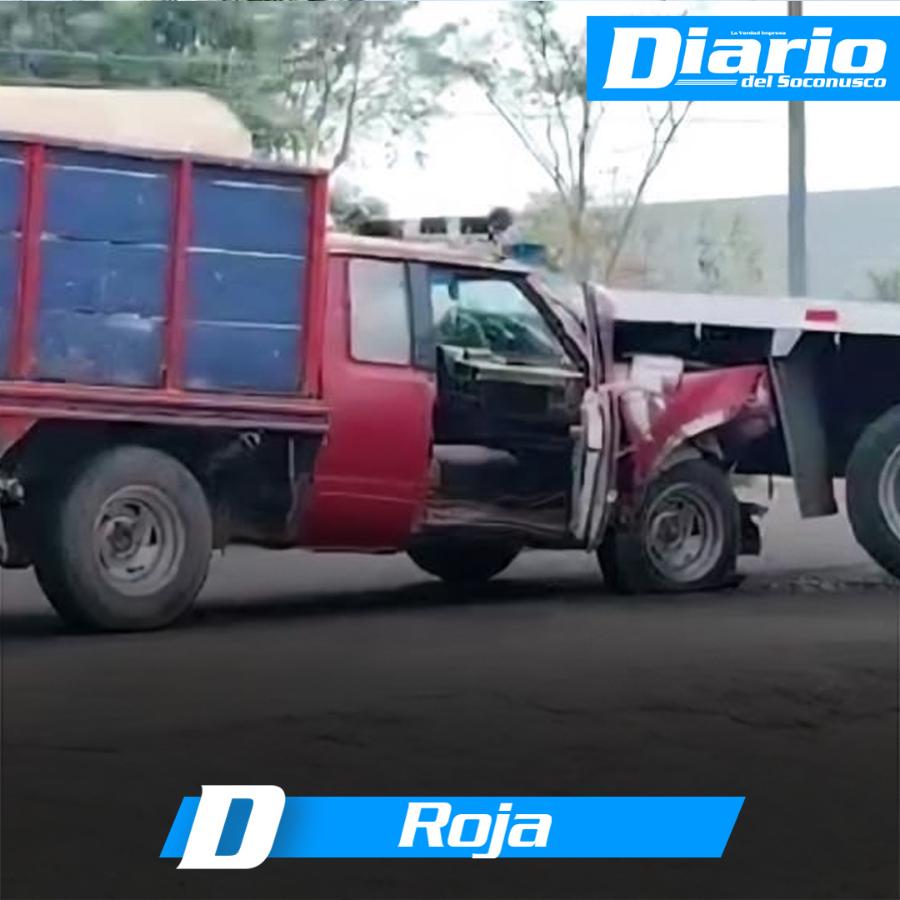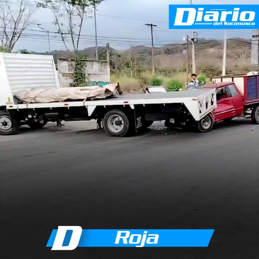 El percance ocurrió cuando una camioneta Nissan tipo “estaquita”, de color rojo, se impactó contra la parte trasera del costado derecho de un vehículo tipo plataforma, provocando daños materiales y dejando al menos a una persona con lesiones.