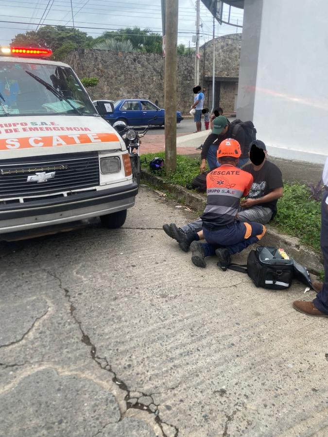 Alrededor de las 9:00 de la mañana de este lunes, se registró un accidente de tránsito entre un taxi local y una motocicleta, en la intersección de la 6ª Avenida Sur y 10ª Calle Poniente, dejando como saldo una persona lesionada y daños materiales.