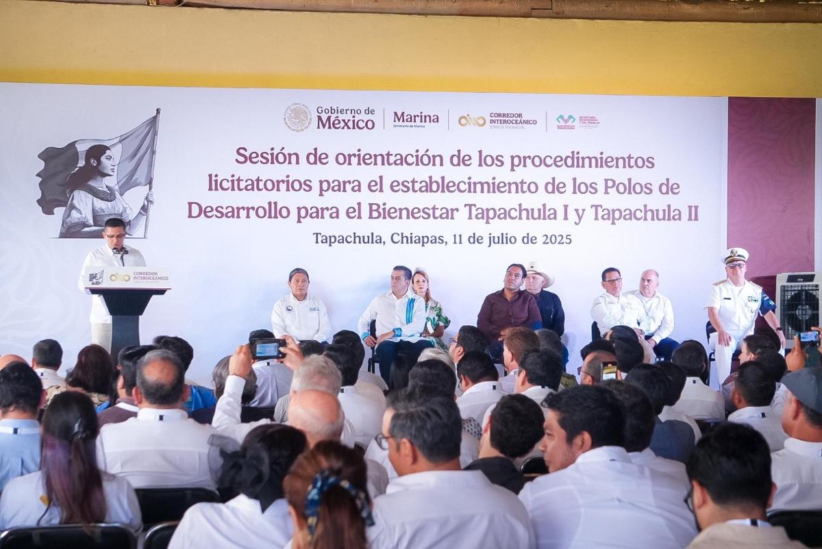 Recordó que actualmente se promueve en Tapachula los Polos de Desarrollo para el Bienestar “Tapachula I y II”, con una superficie de 4.18 millones de m2 de superficie, en donde de acuerdo con el decreto publicado en el Diario Oficial de la Federación (DOF) las vocaciones productivas, prioritarias y potenciales son: eléctrica y electrónica, semiconductores, automotriz (electromovilidad), autopartes y equipo de transporte, dispositivos médicos, farmacéutica, agroindustria, equipo de generación y distribución de energía eléctrica (energías limpias), maquinaria y equipo, tecnologías de la información y la comunicación, así como metales y petroquímica.