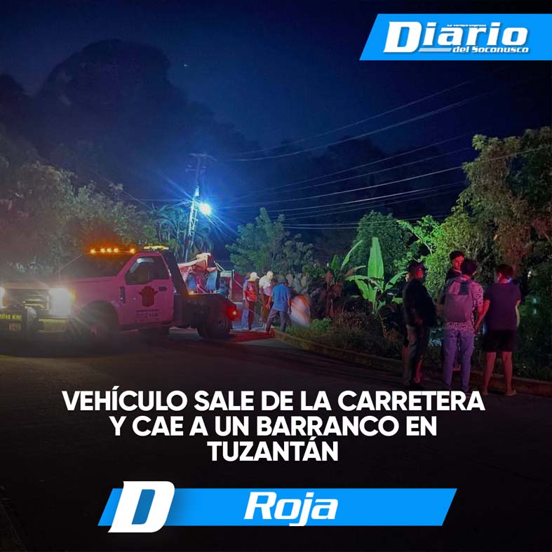 Ante los números de emergencia del 911 se reportó un accidente vehicular en la localidad de Sarabia, perteneciente al municipio de Tuzantán, luego de que un automóvil terminara fuera de la cinta asfáltica, para después caer a un vacío.