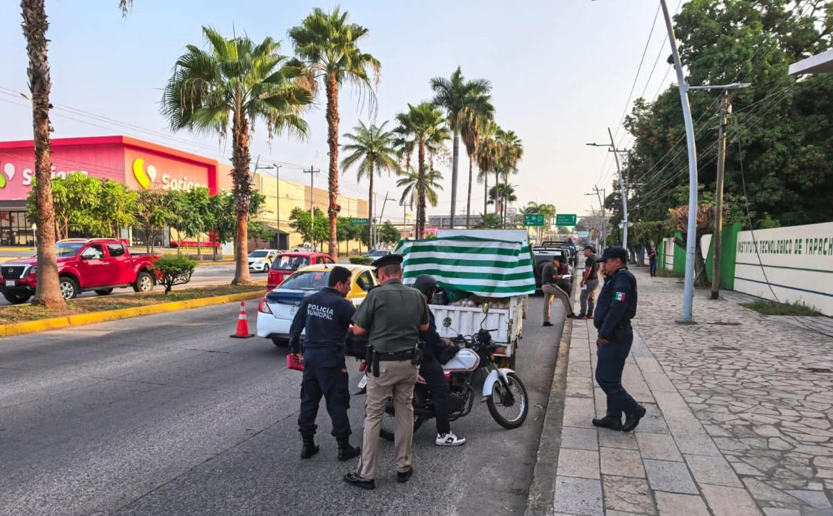 Durante estas acciones, los elementos revisan que los conductores porten casco de seguridad y cuenten con su documentación en regla, como tarjeta de circulación, placa y licencia vigente de motociclista.