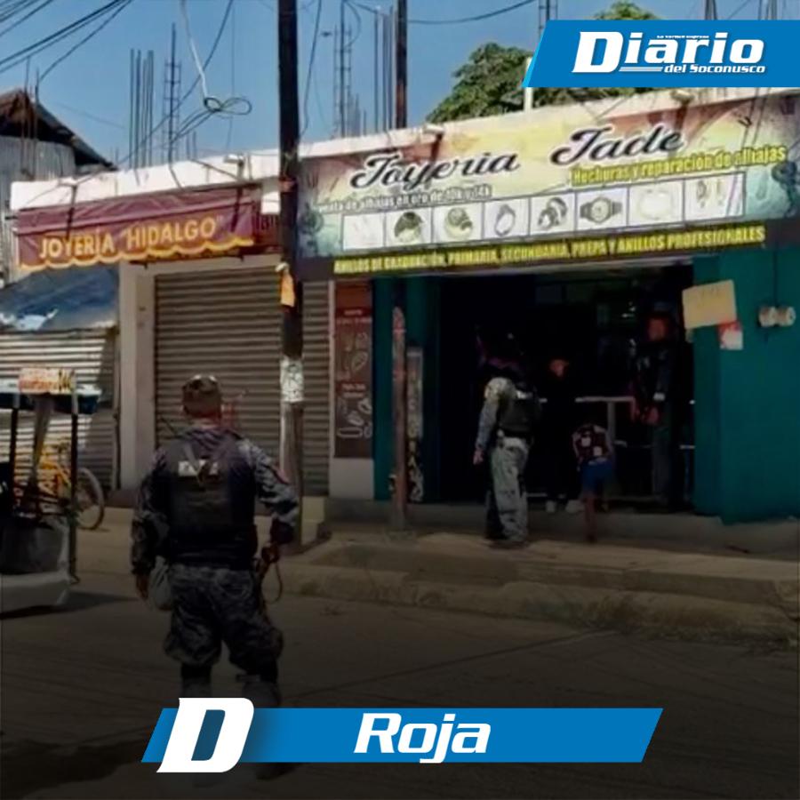A escasos 100 metros de la presidencia municipal de Huixtla, dos sujetos perpetraron un asalto contra la Joyería Jade.