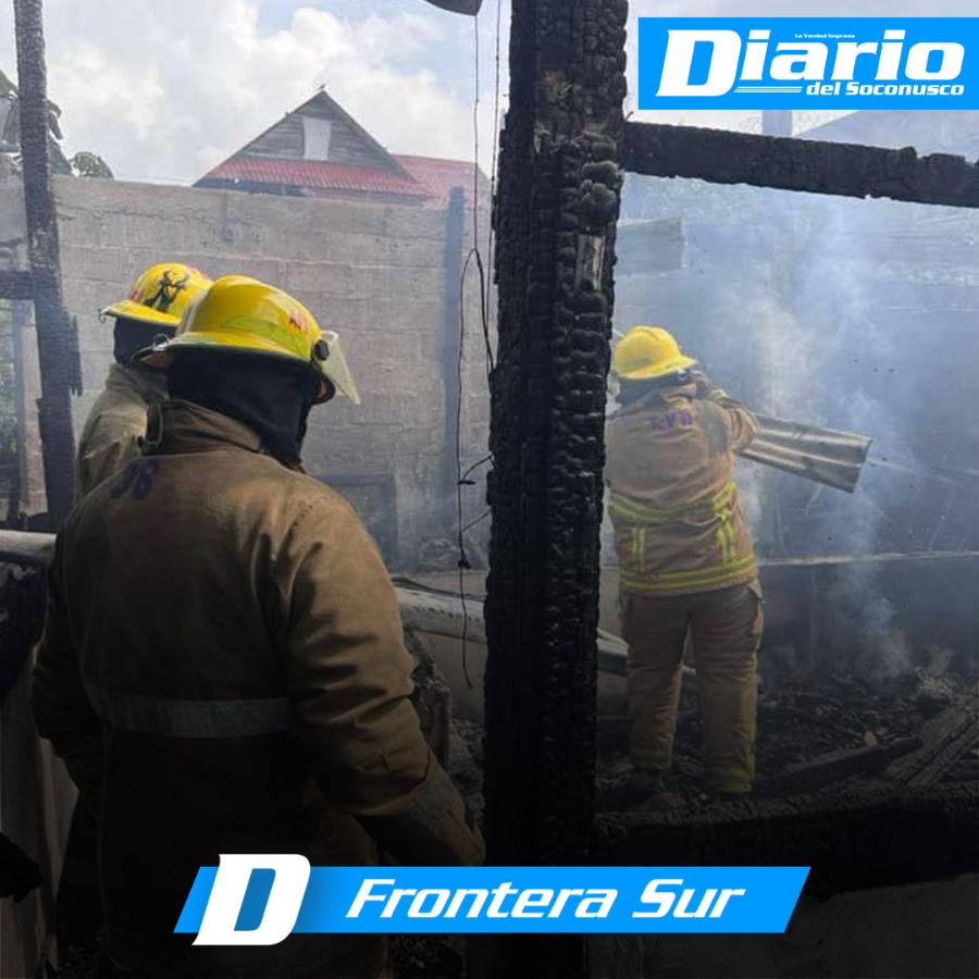 Cacahoatán, Chiapas. Una vivienda quedó completamente reducida a cenizas la tarde de este lunes, luego de que un voraz incendio consumiera en su totalidad una casa habitación ubicada en el ejido El Carmen.
